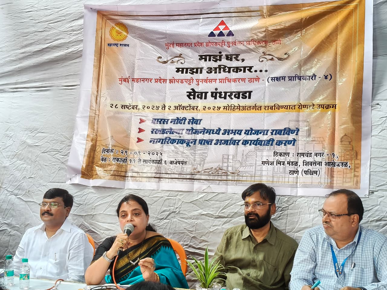 मुंबई महानगर प्रदेश झोपडपट्टी पुनर्वसन प्राधिकरणाचे मुख्य कार्यकारी अधिकारी, श्री.संदीप माळवी यांच्या मार्गदर्शनाखाली दिनांक २९/०९/२०२५ रोजी योजनेतील नागरिकांना प्राधिकरणाबाबत विविध विषयांवर माहिती देण्याकरिता विशेष उपक्रम राबविण्यात आला होता. सदर उपक्रमात पात्रतेबाबत, वारस नोंदणीबाबत, रखलेल्या योजनेमध्ये अभय योजना राबविण्याबाबत इ. अशा अनेक विषयांसंदर्भात नागरिकांना मार्गदर्शन करण्यात आले असून, नागरिकांच्या झो.पु.योजनेबाबतच्या अनेक शंकांचे देखील निरसन करण्यात आले. सदर उपक्रमास प्राधिकरणातर्फे श्रीम. मिनल पालांडे (सक्षम प्राधिकारी-४) व इतर अधिकारी/कर्मचारी उपस्थित होते. त्यांनी सर्व नागरिकांच्या तक्रारी सोडविण्याचा प्रयत्न केला. कार्यक्रमस्थळी दिवसभरात मोठया संख्येने नागरिकांनी उपस्थित राहून योजनेतील विविध विषयांची माहिती घेऊन आपल्या शंकाचे निरसण केले तसेच अशा नाविण्यपूर्ण संकल्पनेबाबत प्राधिकरणाचे मुख्य कार्यकारी अधिकारी (श्री.माळवी), सक्षम प्राधिकारी-4 (श्रीम.पालांडे) व इतर उपस्थित सर्व अधिकारी/कर्मचारी वर्गाचे आभार मानले. तसेच शासनाच्या विभागाने लोकांच्या दारी जाऊन त्यांचे प्रश्न सोडविल्यामुळे सर्व नागरिकांनी प्राधिकरणाने केलेल्या या यशस्वी उपक्रमाबाबत समाधान व्यक्त केले.